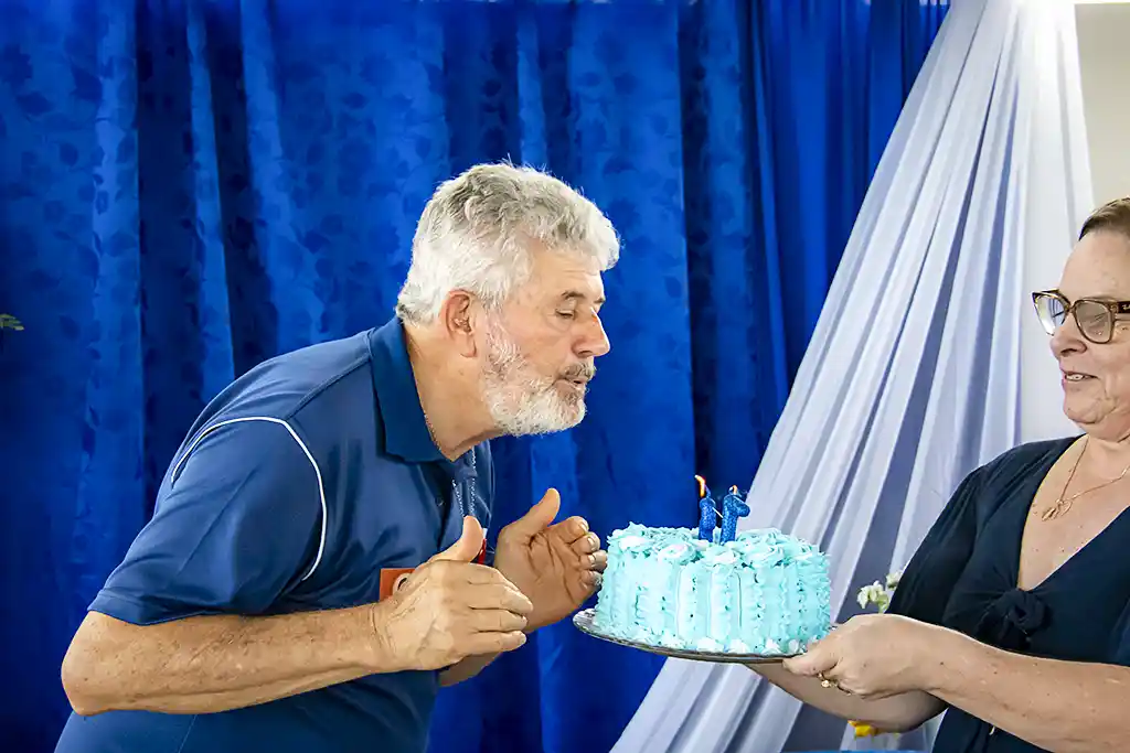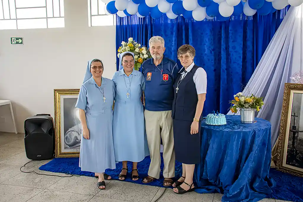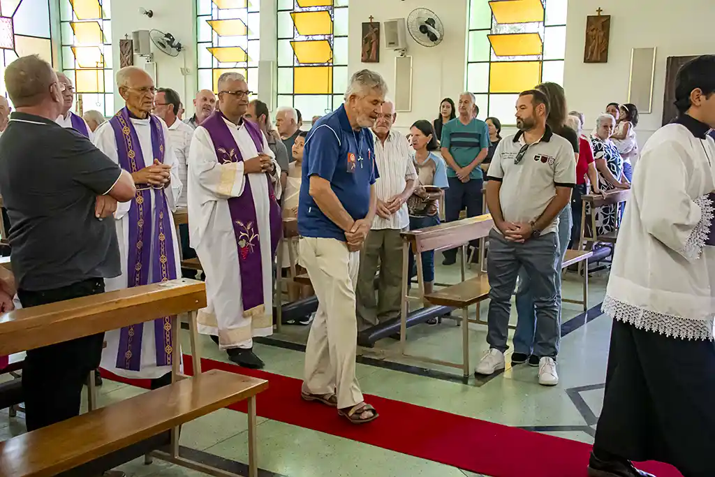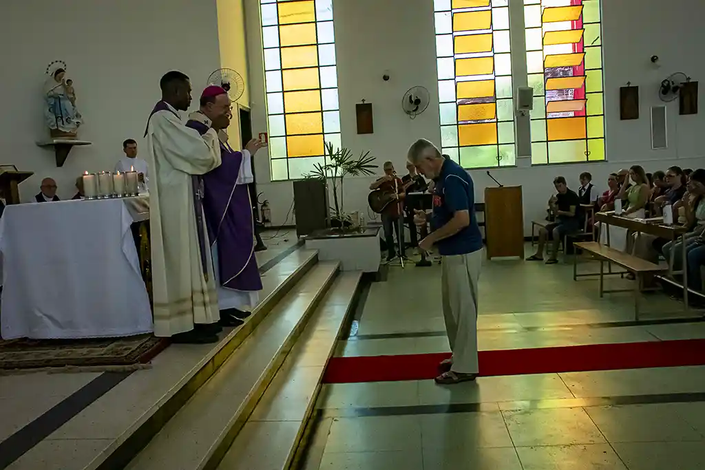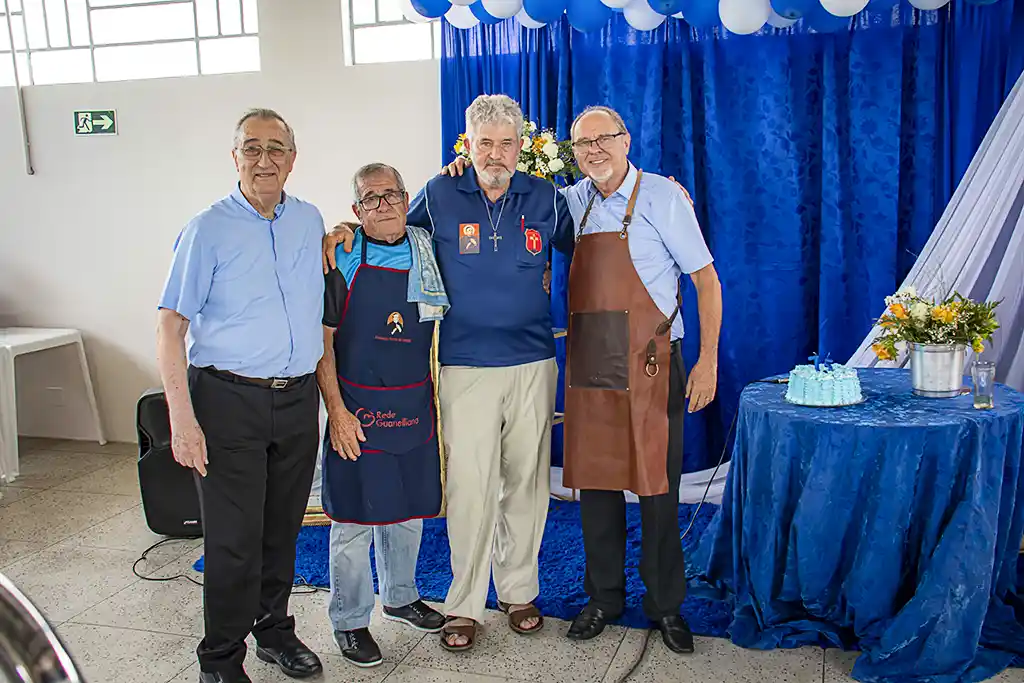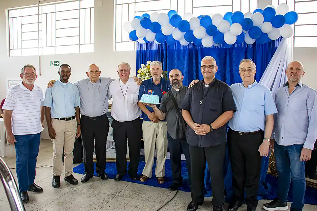 Após a missa, a confraternização continuou com um almoço festivo, reunindo a Família Guanelliana, familiares, amigos e membros da comunidade local. O encontro fraterno foi também ocasião para agradecer, recordar a trajetória vivida e renovar a esperança para os passos que ainda virão. Parabéns, Irmão Marin!