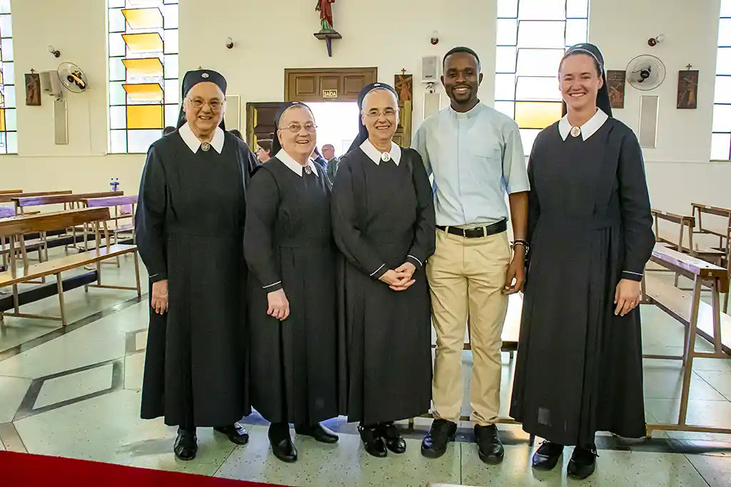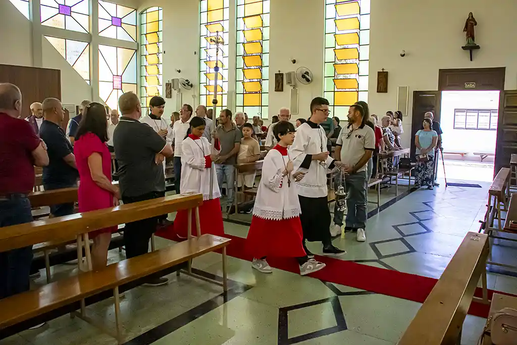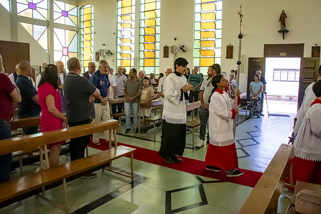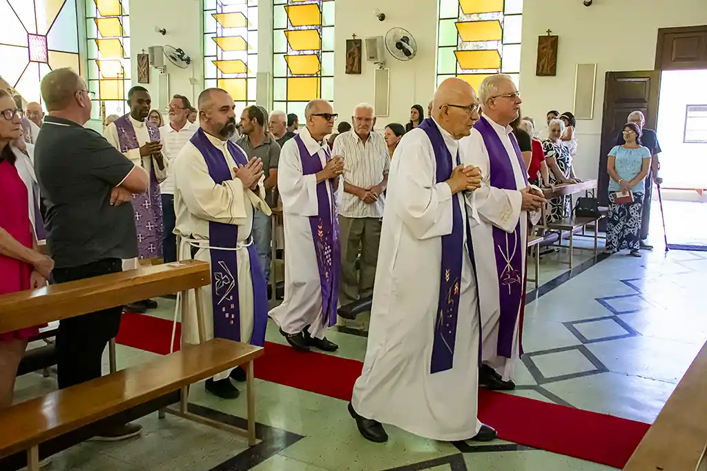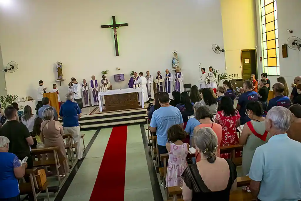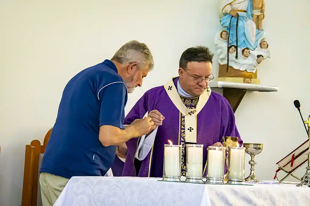Após a missa, a confraternização continuou com um almoço festivo, reunindo a Família Guanelliana, familiares, amigos e membros da comunidade local. O encontro fraterno foi também ocasião para agradecer, recordar a trajetória vivida e renovar a esperança para os passos que ainda virão. Parabéns, Irmão Marin!