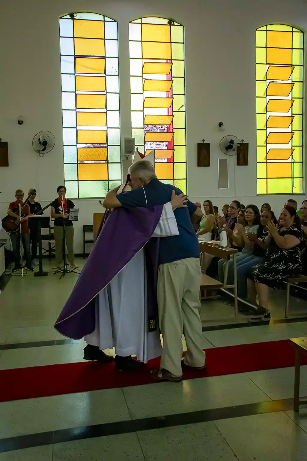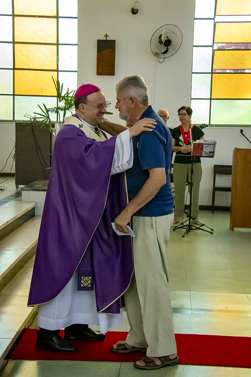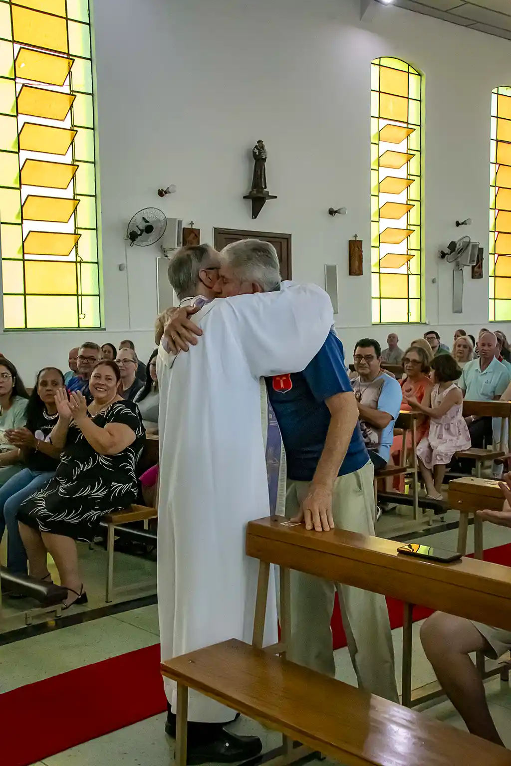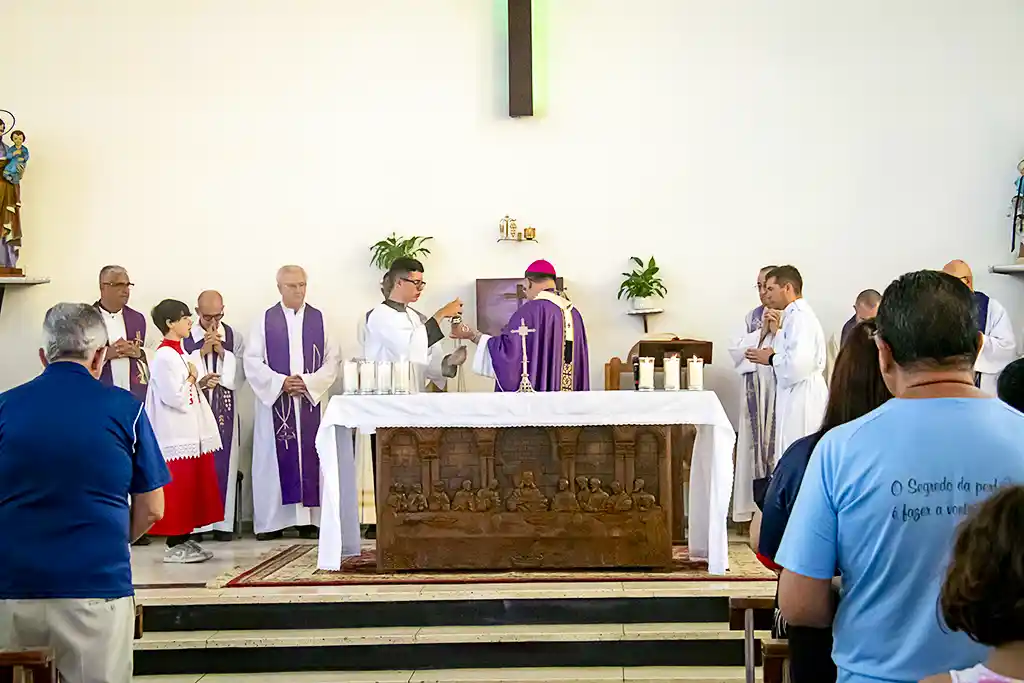Após a missa, a confraternização continuou com um almoço festivo, reunindo a Família Guanelliana, familiares, amigos e membros da comunidade local. O encontro fraterno foi também ocasião para agradecer, recordar a trajetória vivida e renovar a esperança para os passos que ainda virão. Parabéns, Irmão Marin!